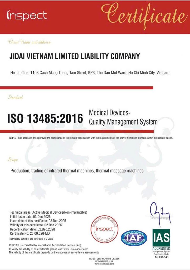 + Đạt các chứng nhận chất lượng quốc tế như ISO 13485 (thiết bị y tế).